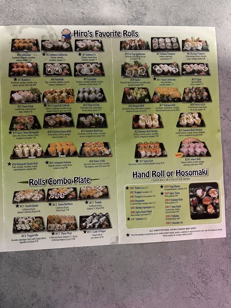 The FDA advises consuming raw or undercooked meats, poultry, seafood or eggs increases your risk of foodborme illness. Half California roll, half tuna roll, tuna, white fish, salmon, escolar, kani kama, and shrimp.