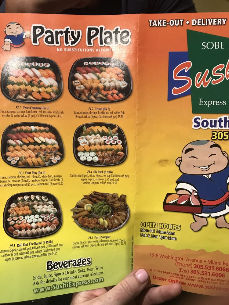 Sushi Express, located in Miami Beach, FL, offers a casual yet classy dining experience with a wide range of sushi options. The menu includes vegan and vegetarian choices, as well as popular dishes like shrimp fried rice, chicken yakitori skewers, and spinach shitaki mushrooms. Customers rave about the freshness and quality of the sushi, with generous portion sizes at affordable prices. The friendly and efficient staff provide excellent customer service, making it a favorite spot for locals and visitors alike. Whether you're looking for a quick takeout option or a sit-down meal, Sushi Express delivers consistently delicious food and a pleasant dining experience. Don't miss out on their Happy Hour specials and beer & wine offerings. Experience the taste of Japan with a visit to Sushi Express today!